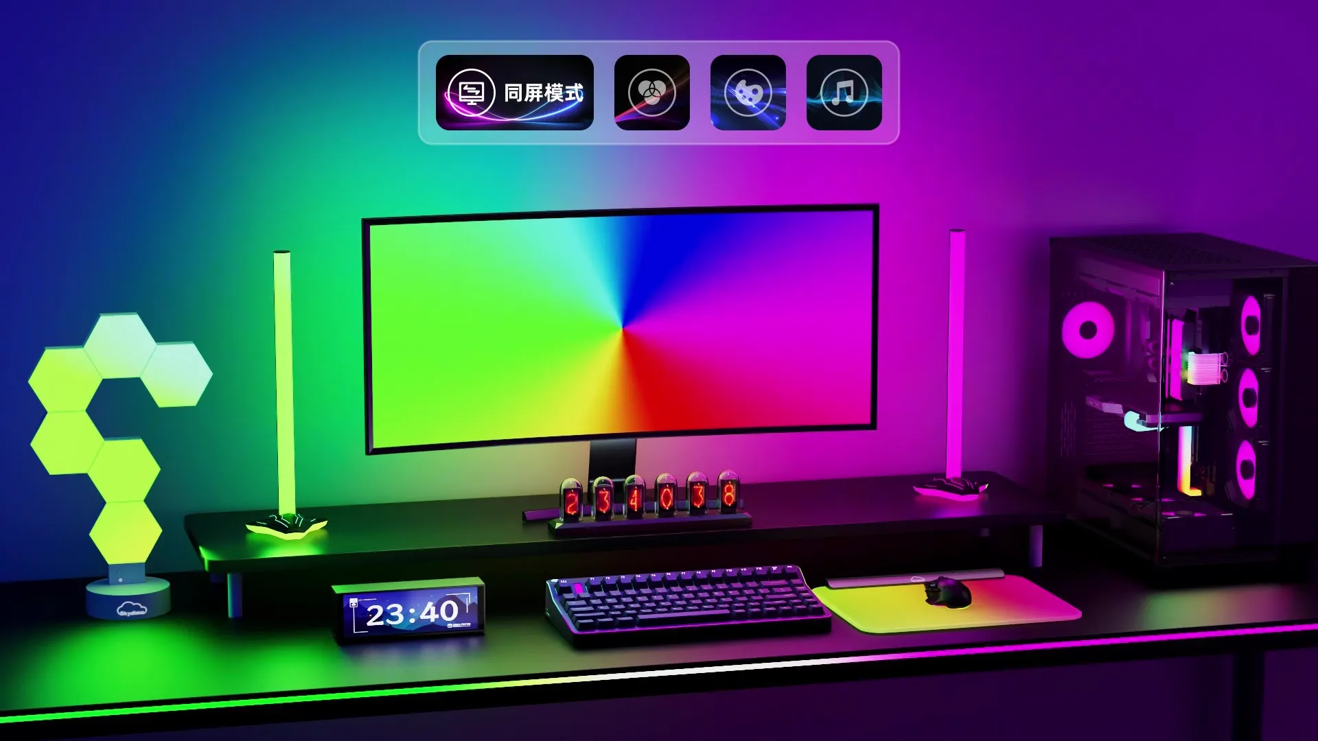 RGBIC PC Monitor Backlight - 360° 4-Side Screen Mirror Sync - Zero Lag Reactive Gaming Lights for Windows & Mac